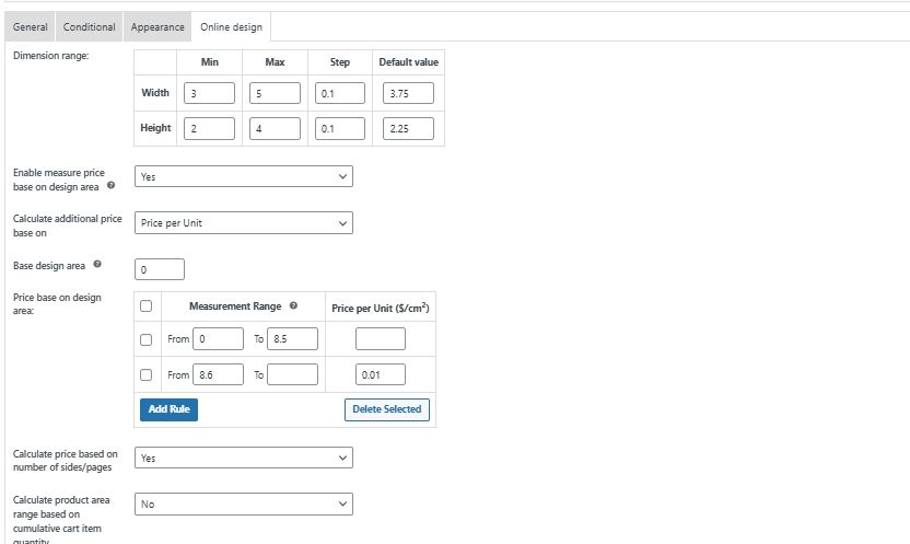 - Flexible pricing rules (by color, area, material, bulk order)
